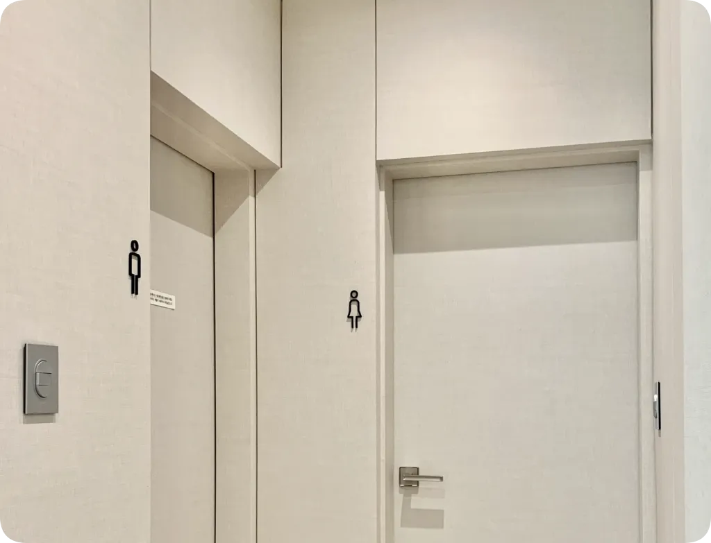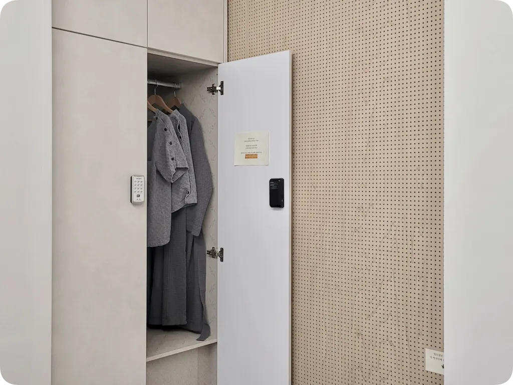 화장실을 사용하실 땐 출입문을 잘 잠그시고 전체 공간을 프라이빗하게 누리세요.